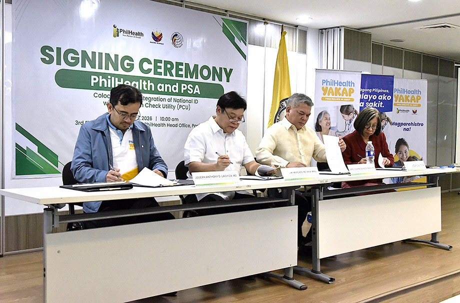 THE PHILIPPINE Health Insurance Corporation (PhilHealth) and the Philippine Statistics Authority (PSA) have strengthened their partnership to modernize systems, prevent fraudulent claims, and ensure benefits reach every Filipino, with the signing of a Memorandum of Agreement (MOA) for the Philippine Identification System (PhilSys) co-location and the launch of the PhilHealth Check Utility (PCU) today, March 26.